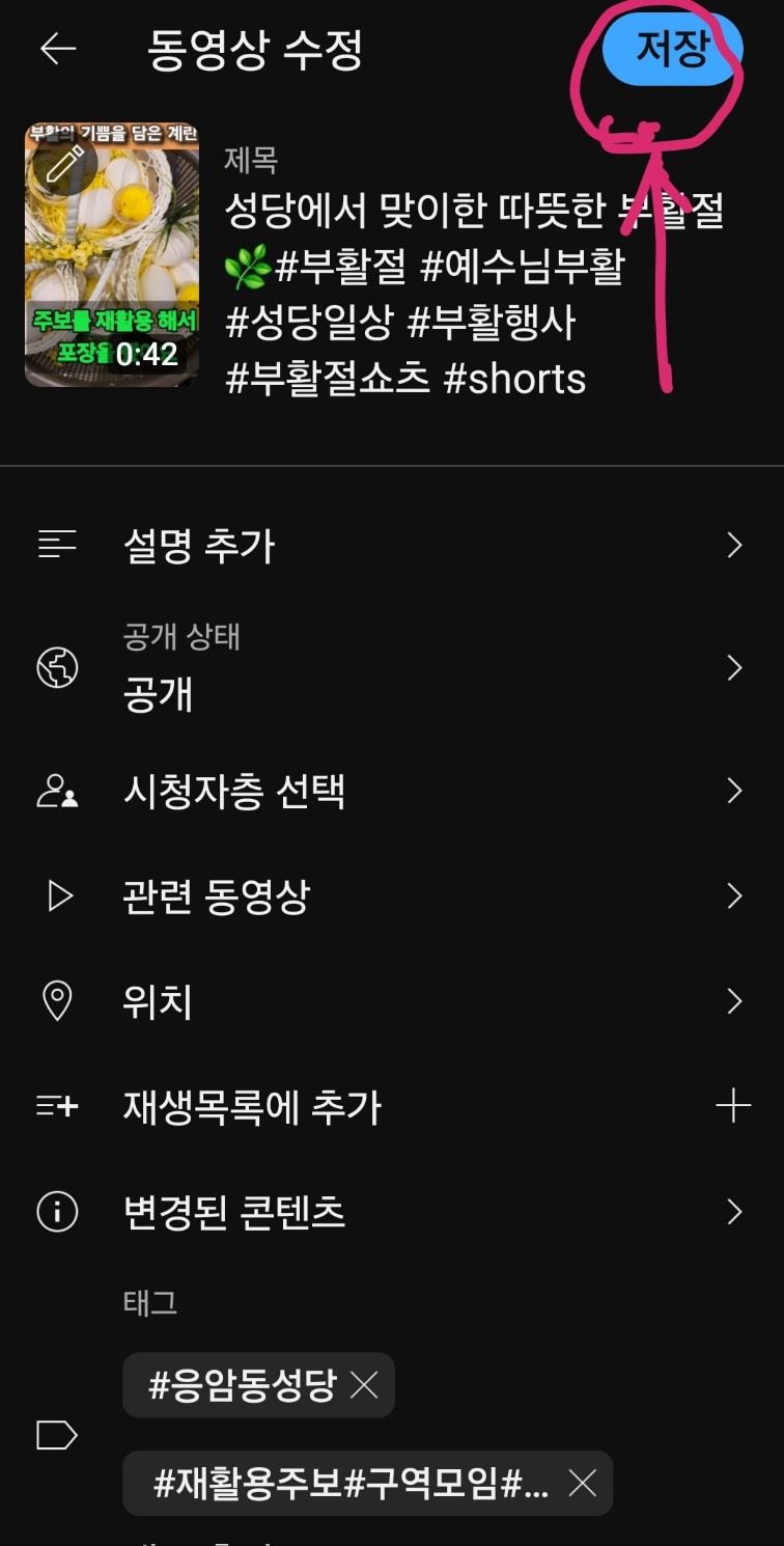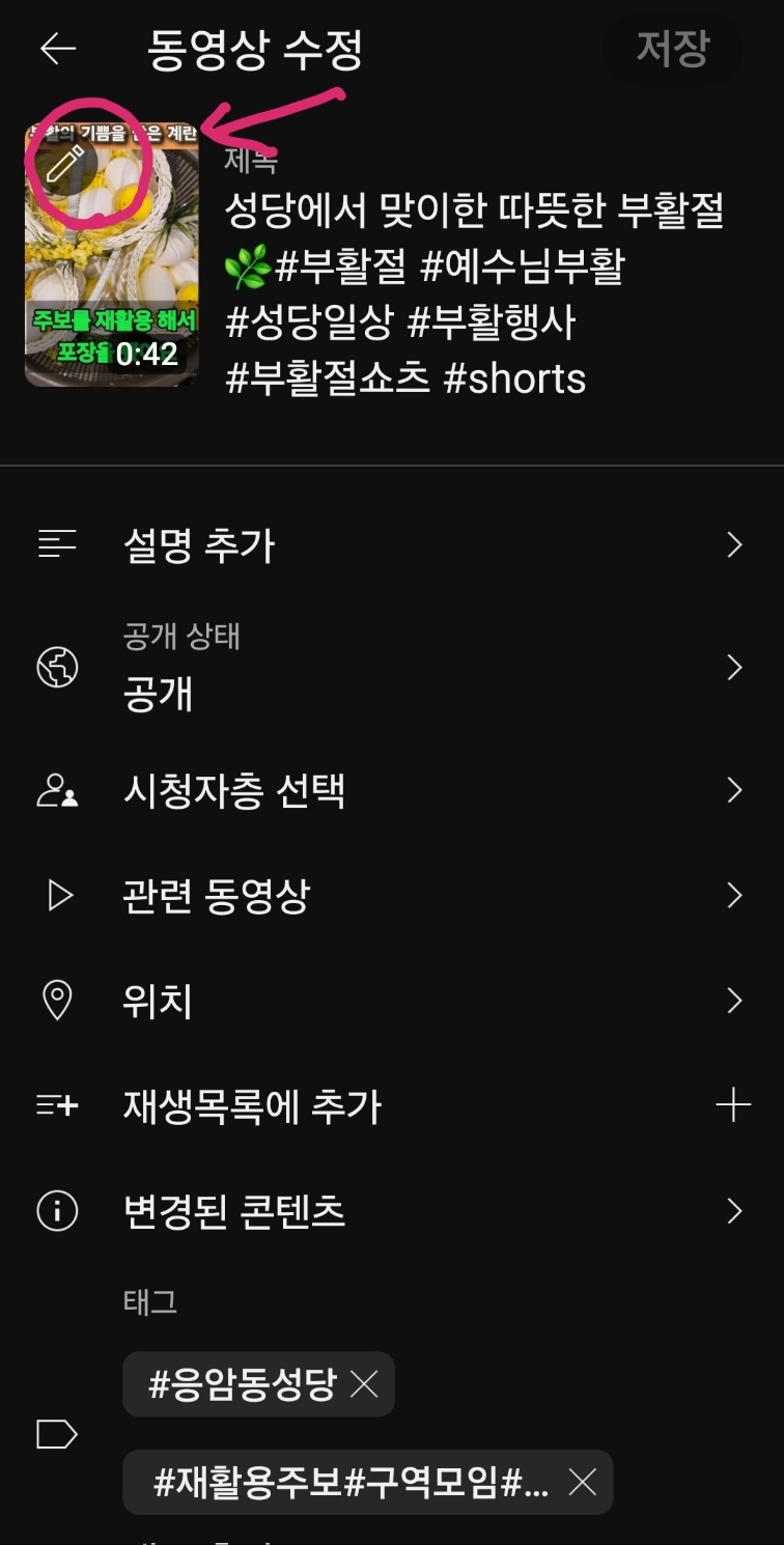 9) 저장까지 누르면 썸네일이 바뀌어 있을거에요~~