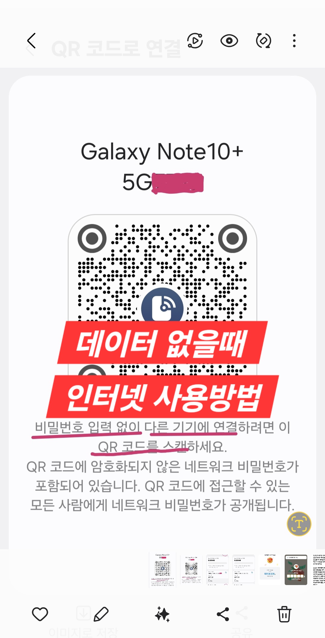 비번 설정을 안 하려면...맨 밑에 QR코드가 보이는데,,(QR 찍은 사람만 공유됨)